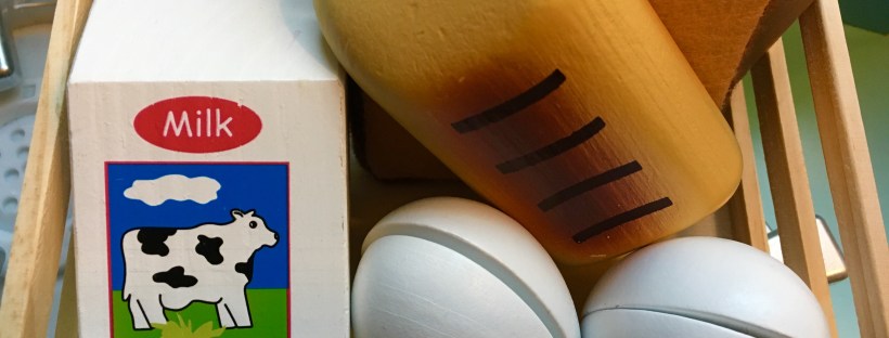 Don’t forget…a well-stocked grocery store, is a good grocery store! And bonus, it doesn’t have to cost you a penny. Check your recycling bins for empty food containers (cereal boxes, snack boxes, egg cartons,etc.) to add to the shelves and tape a weekly sale flyer up on the wall as a creative touch. Better yet, use the flyer as a learning tool and ask your child simple questions, such as “what’s on sale today?”